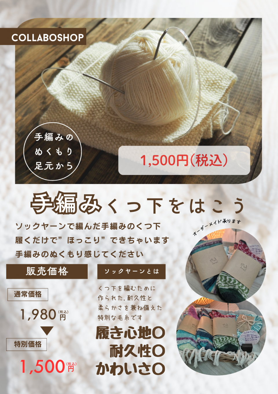 ”ソックヤーン”という、くつ下に適した毛糸でできた履き心地抜群のくつ下です。