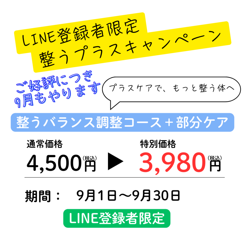 【ご好評につき9月もやります、整うプラスキャンペーン】
