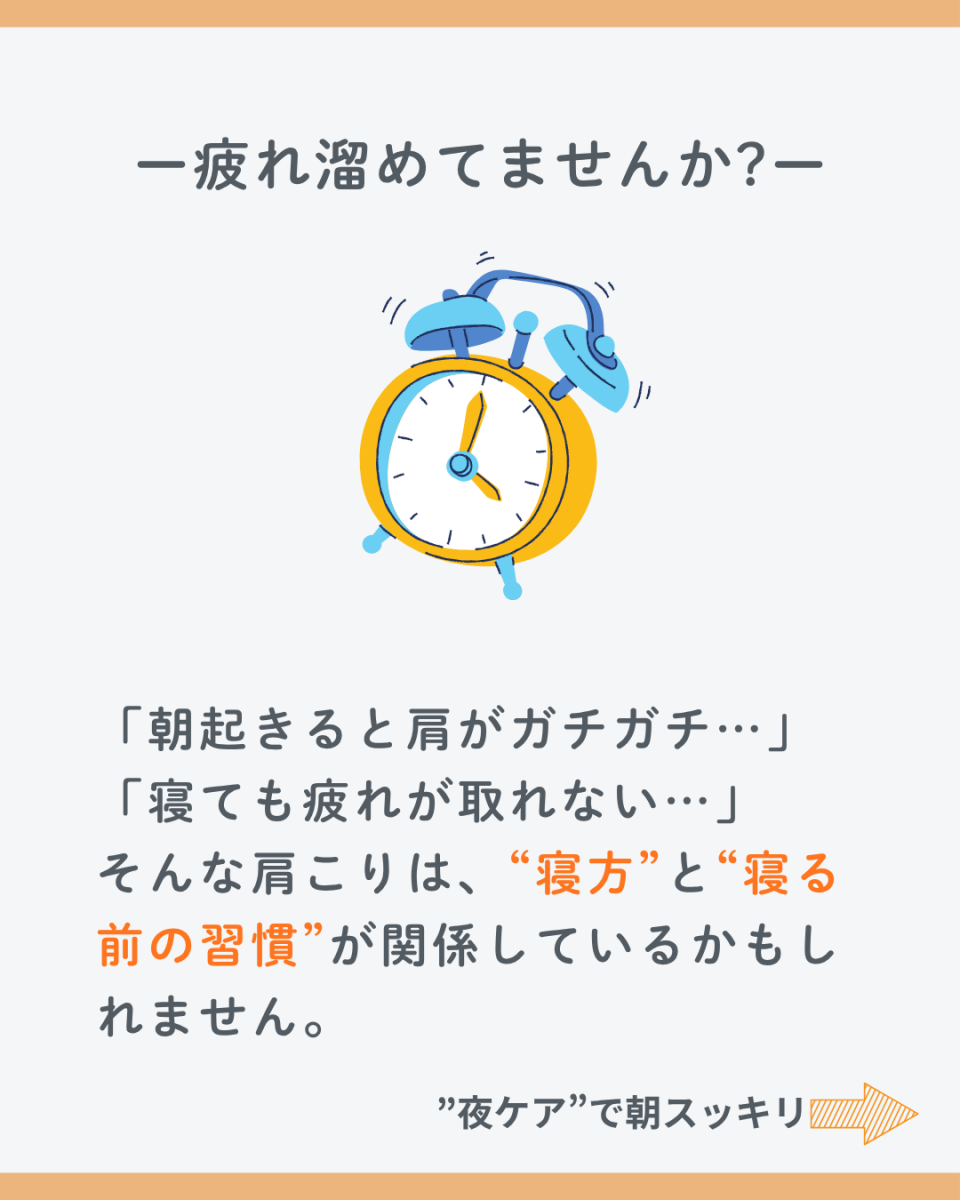 さて、みなさん朝はスッキリ起きれてますでしょうか。朝起きて「肩がガチガチ」なんてことないですか?