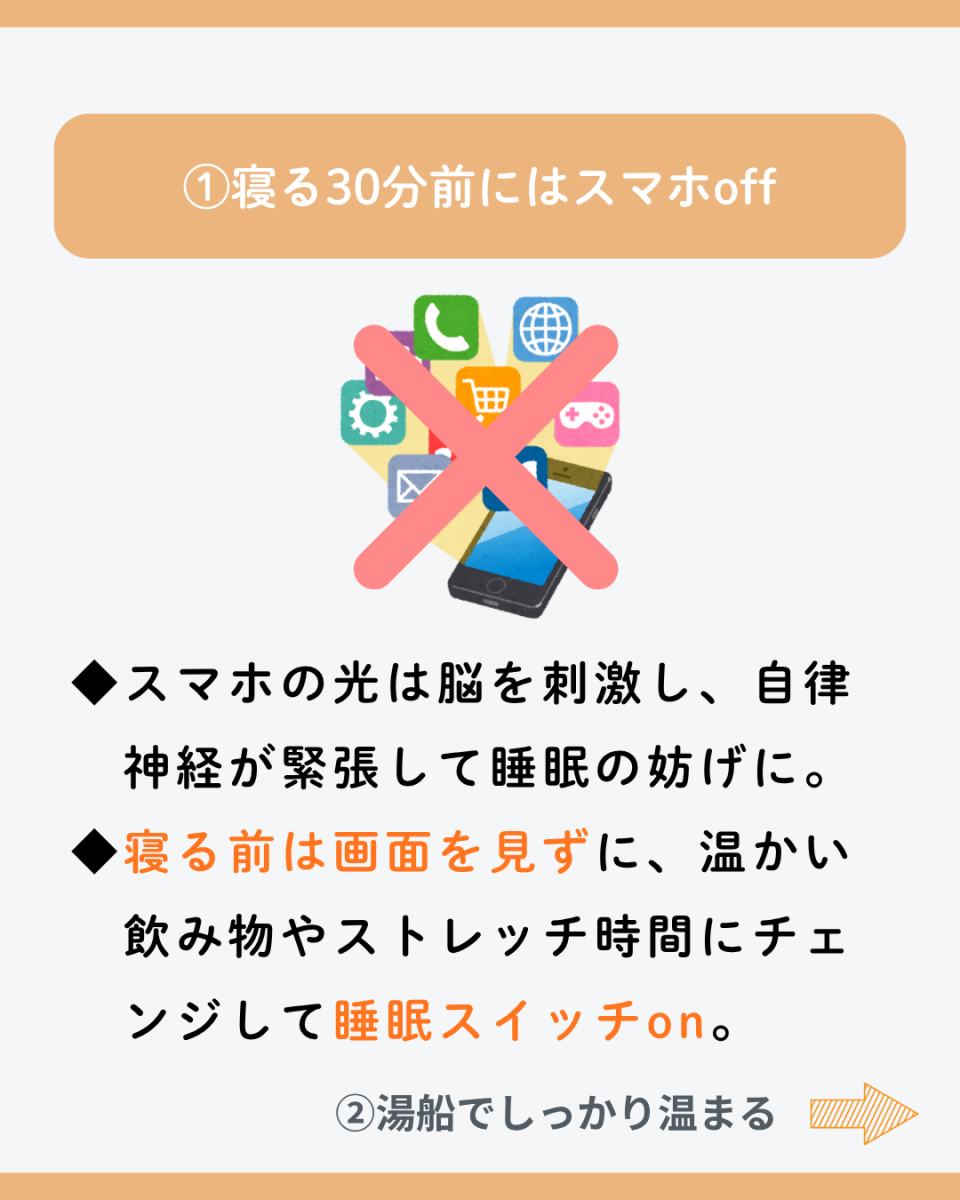 これらの原因と合わせて起こりやすいのが”寝方”と”寝る前の習慣”の関係です。そこから対策する事で朝の目覚めが変わっていきます。